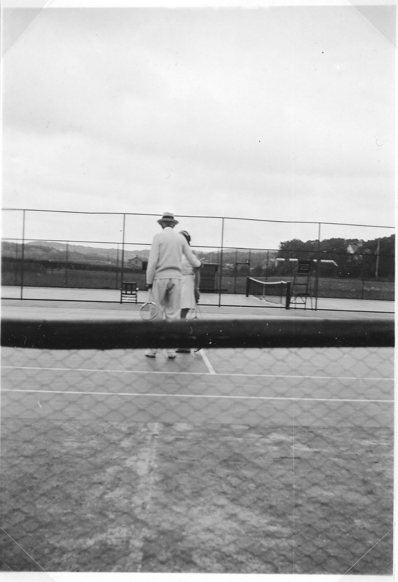 En man och en kvinna på en tennisplan. Mannen är kung Gustav V.