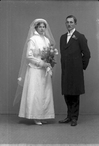 Ett brudpar, bruden i vitt.