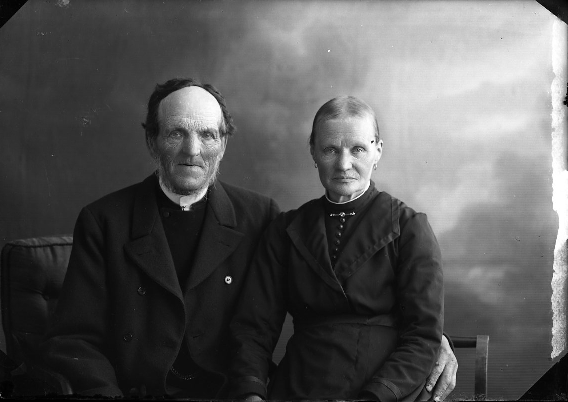 Ett äldre sittande par. Mannen håller sin arm om kvinnans midja.