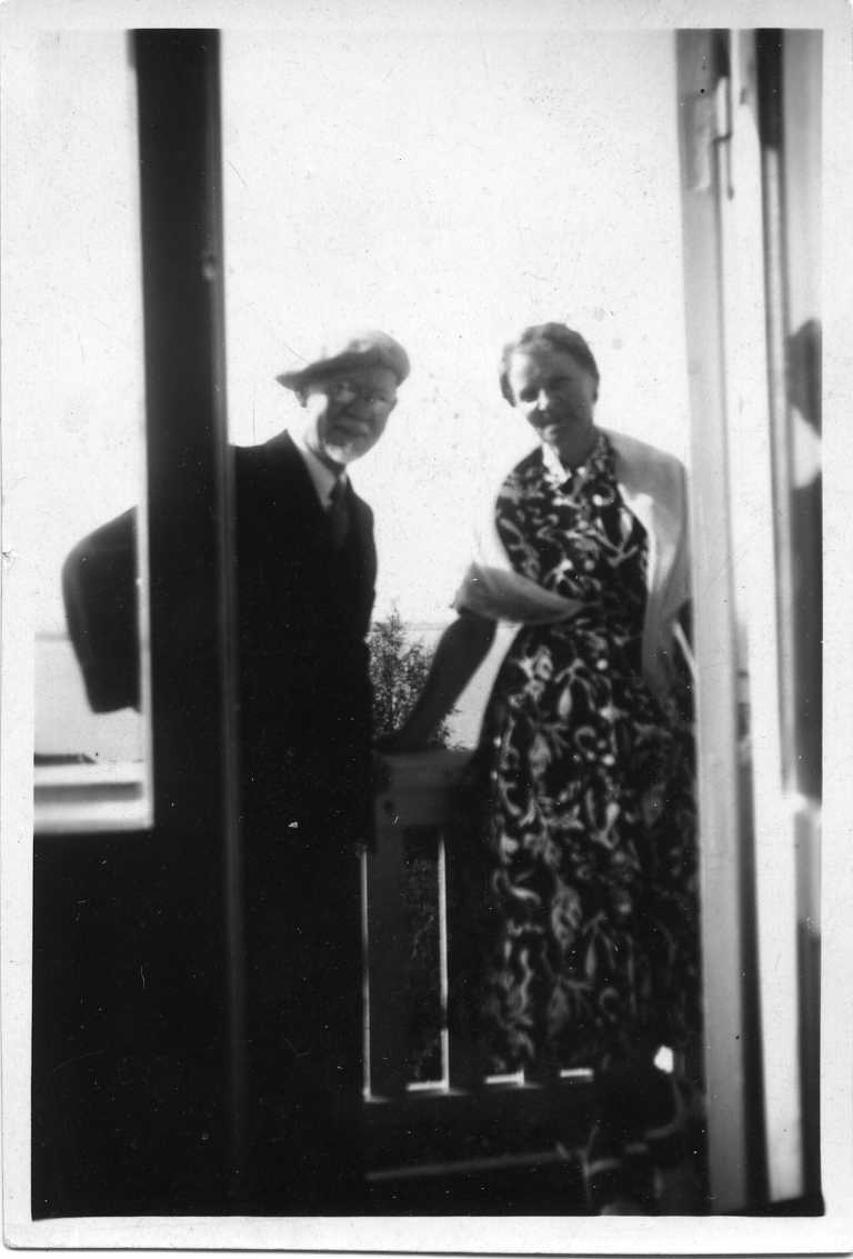 En man och en kvinna står på en balkong, fotograferade inifrån.