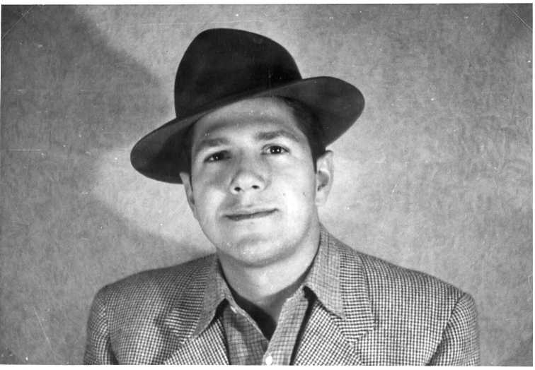 Porträtt av L R Green med hatt på huvudet, en ung man.