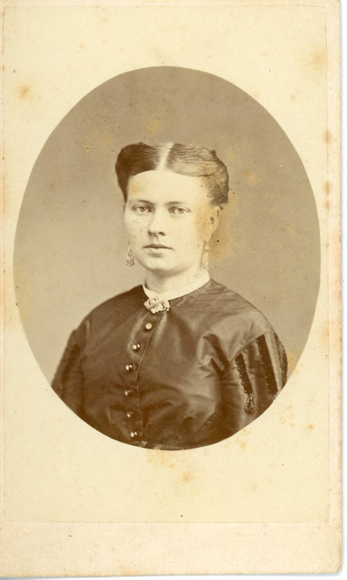 Porträtt av en okänd kvinna - bröstbild - med örhängen.