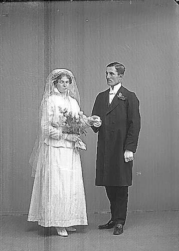 Ett brudpar, bruden i vitt.