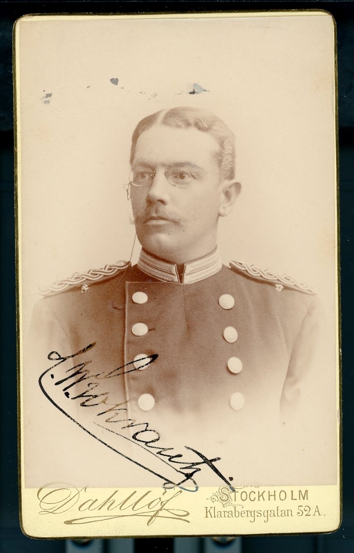 Kabinettsfotografi: C G Lokranz med monokel och i uniform