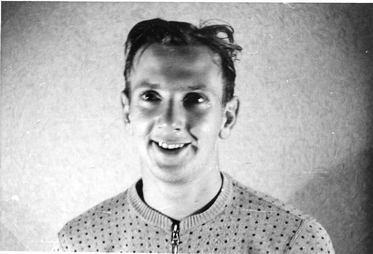 Porträtt av 2nd/Lt F E Vandevelde i prickig kofta.