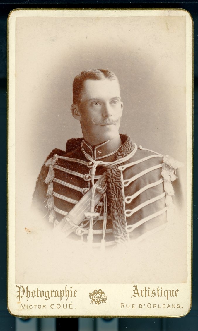 Kabinettsfotografi: ryttmästare Berndt Hay i husaruniform.