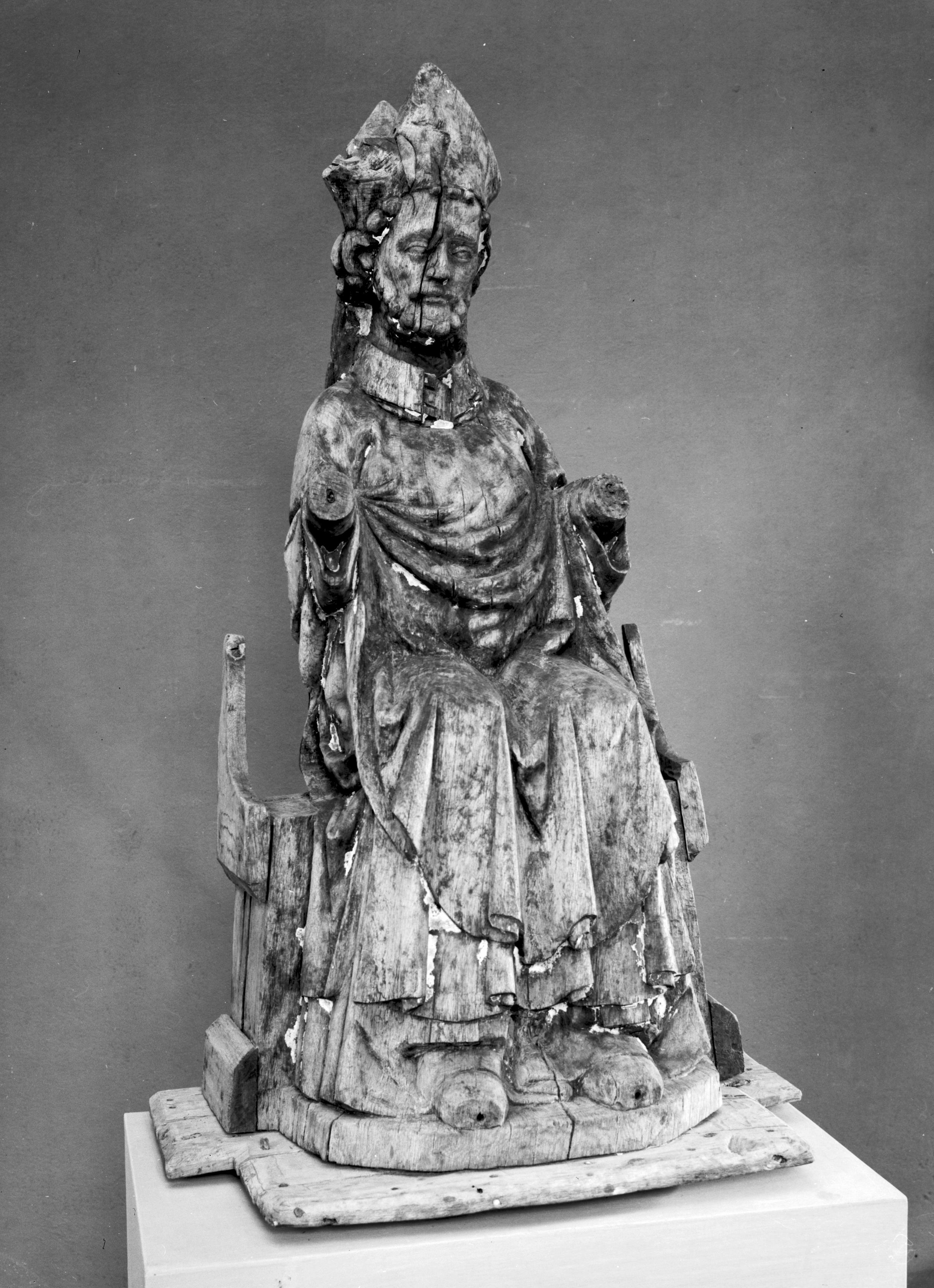 Helig biskop av snidad, förgylld och målad ek, 1300-talets förra hälft.