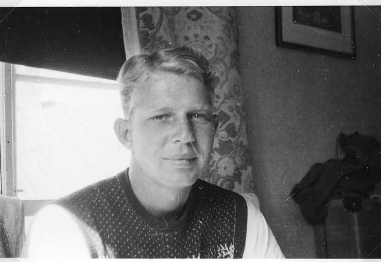 Porträtt av L T Sanford i prickig stickad tröja.