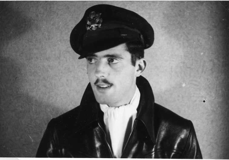 Troligen G B Williams, en ung man i uniform: skinnjacka, scarf och skärmmössa.