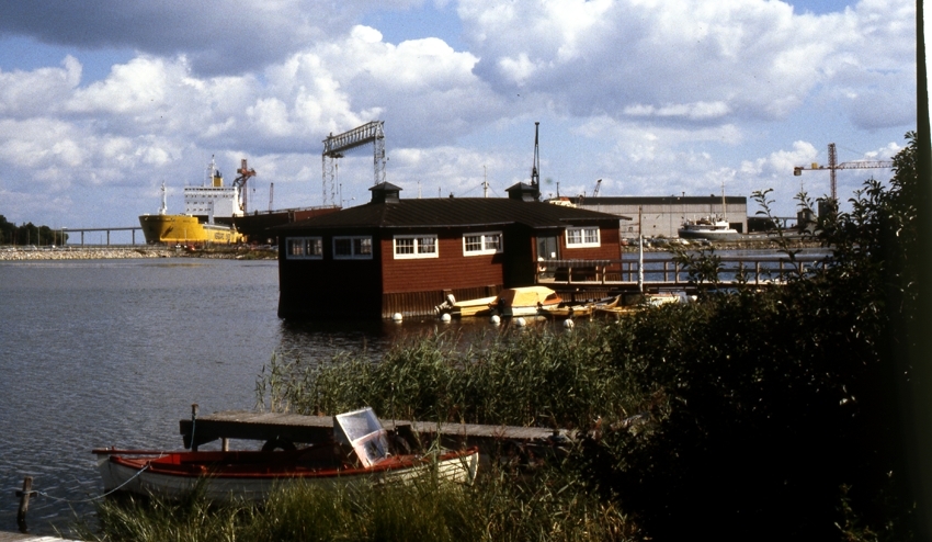 Klapphuset med varvet i bakgrunden.