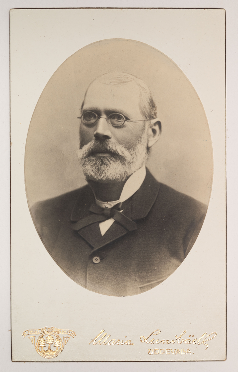 Visitkortsporträtt av Adolf P Zachau. Fotografiet sitter i fotoalbum som tillhört Gertrud Zachau. Fotografiet sitter på sida 35.