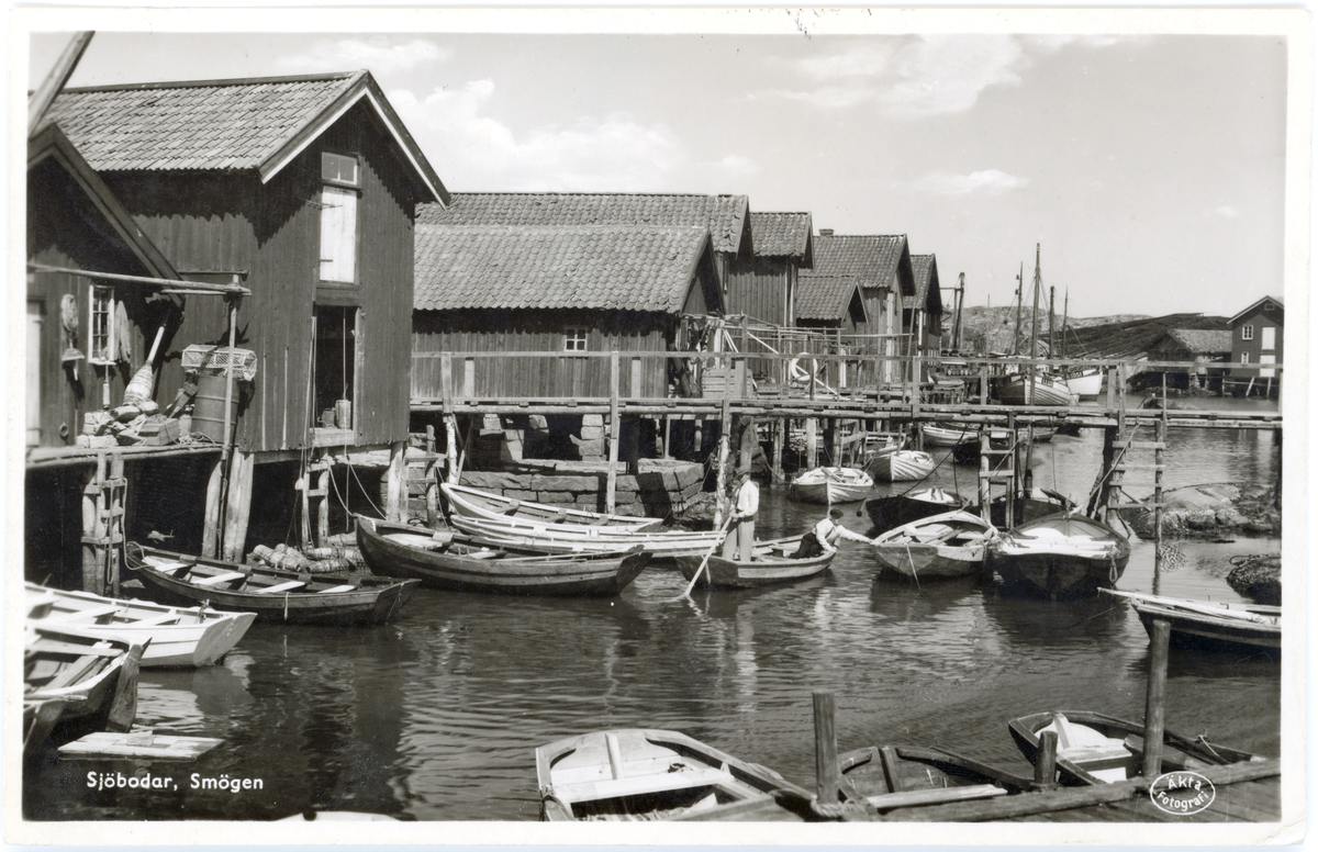 Text på kortets baksida: Smögen. Härliga salta bad, fiske och soliga klippor.