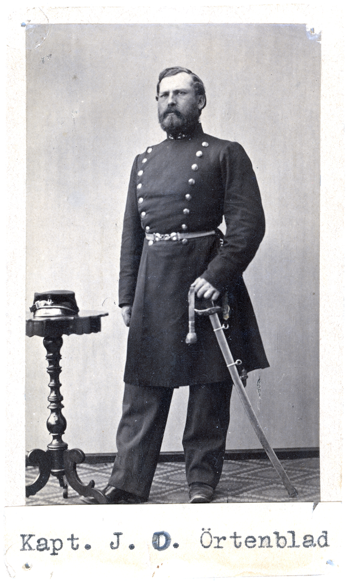 Text på kortets baksida: "Kapten Johan Olof Örtenblad, F. 1825. 1867 löjtnant vid Boh. reg.".