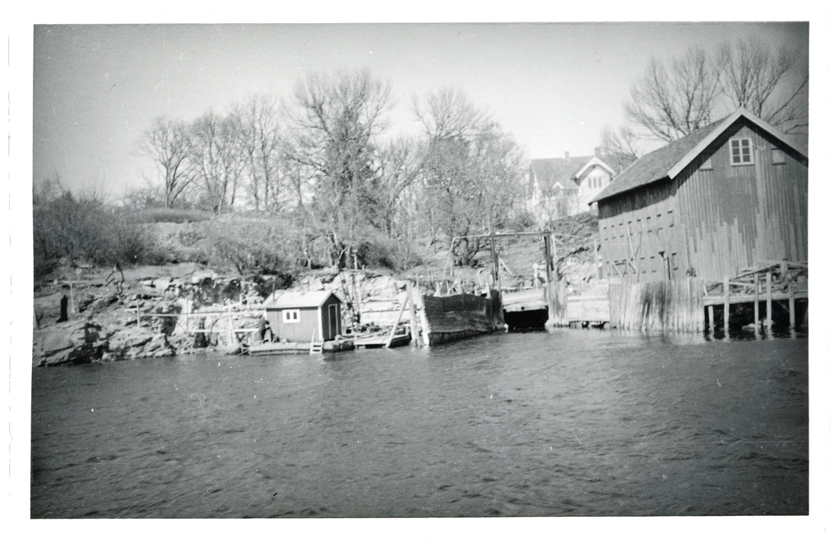 Noterat på kortet: "Svanesund. Färjeläget vid ombyggnaden för dom större färjorna."