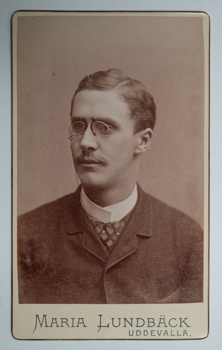 Visitkortsporträtt av okänd man. Fotografiet sitter i fotoalbum som tillhört Gertrud Zachau. Fotografiet sitter på sida 17.