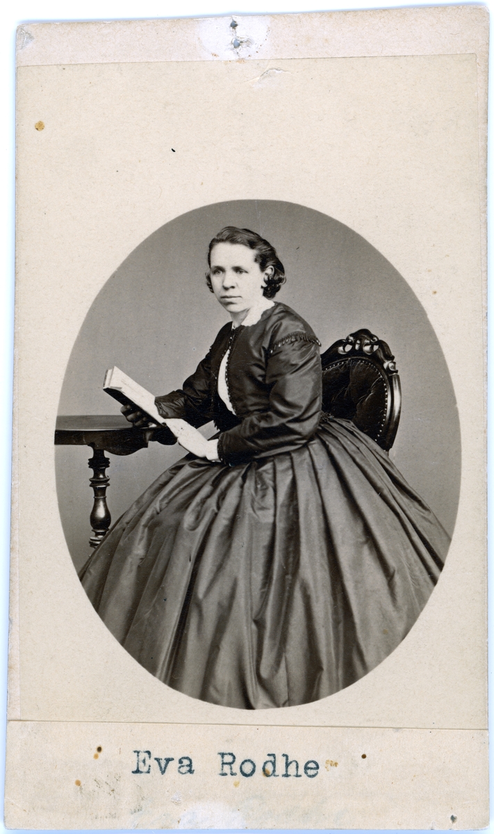 Text på kortets baksida: "Lärarinnan Eva Rodhe Göteborg. F. 1836".