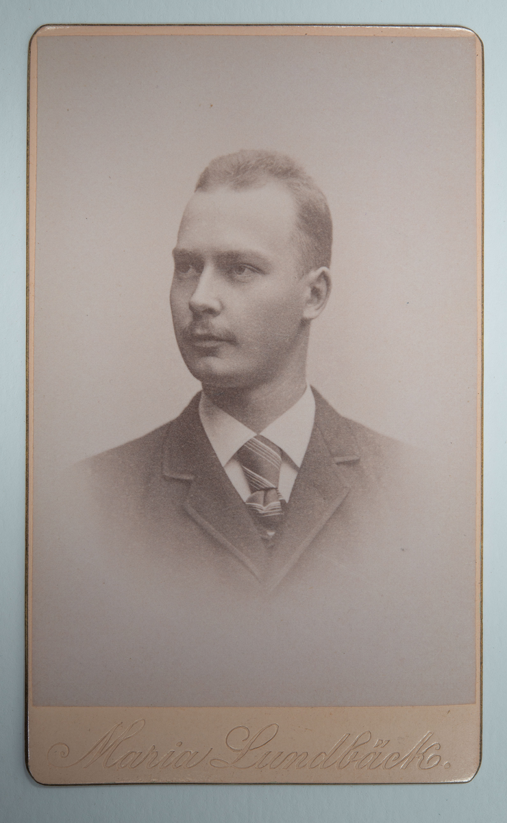 Visitkortsporträtt av okänd man. Fotografiet sitter i fotoalbum som tillhört Gertrud Zachau. Fotografiet sitter på sida 12.