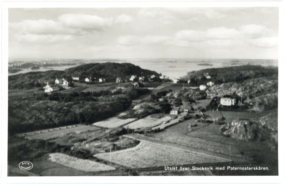 Tryckt text på kortet: "Utsikt över Stockevik med Paternosterskären."