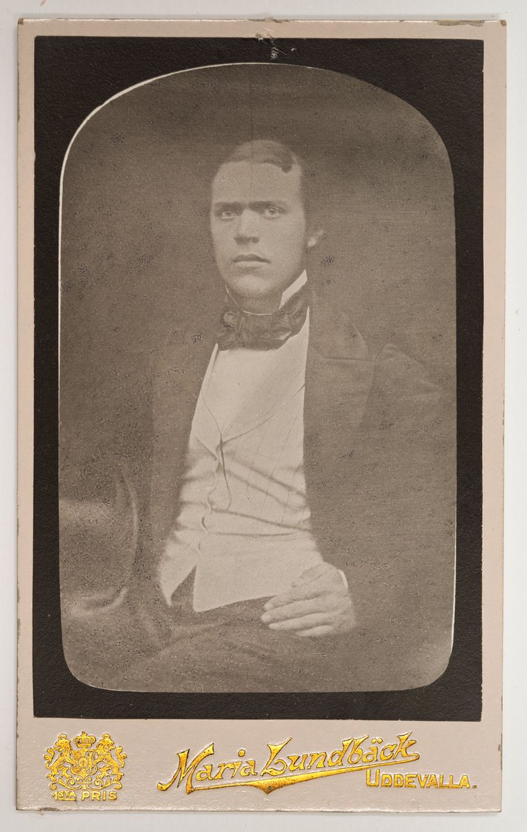 Visitkortsporträtt av Adolf P Zachau. Fotografiet sitter i fotoalbum som tillhört Gertrud Zachau. Fotografiet sitter på sida 35.
