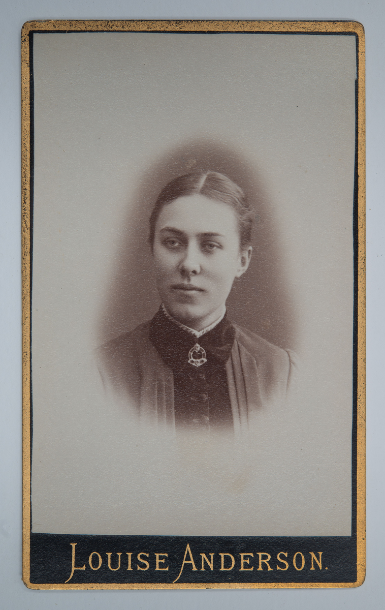 Visitkortsporträtt av okänd kvinna. Fotografiet sitter i fotoalbum som tillhört Gertrud Zachau. Fotografiet sitter på sida 9.