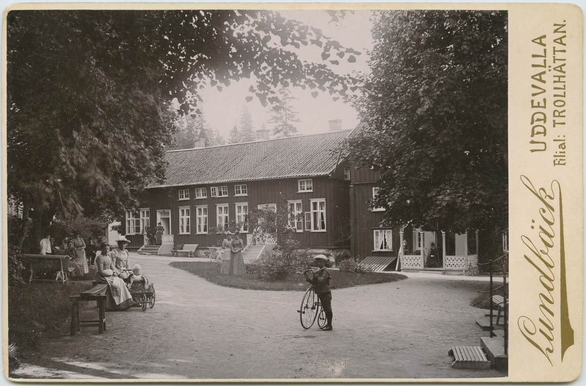 Text i guld på framsidan av fotot: "Lundbäck. UDDEVALLA. Filial: TROLLHÄTTAN."