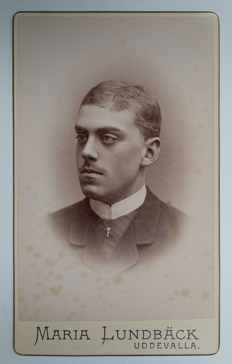 Visitkortsporträtt av Hjalmar Zachau. Fotografiet sitter i fotoalbum som tillhört Gertrud Zachau. Fotografiet sitter på sida 7.