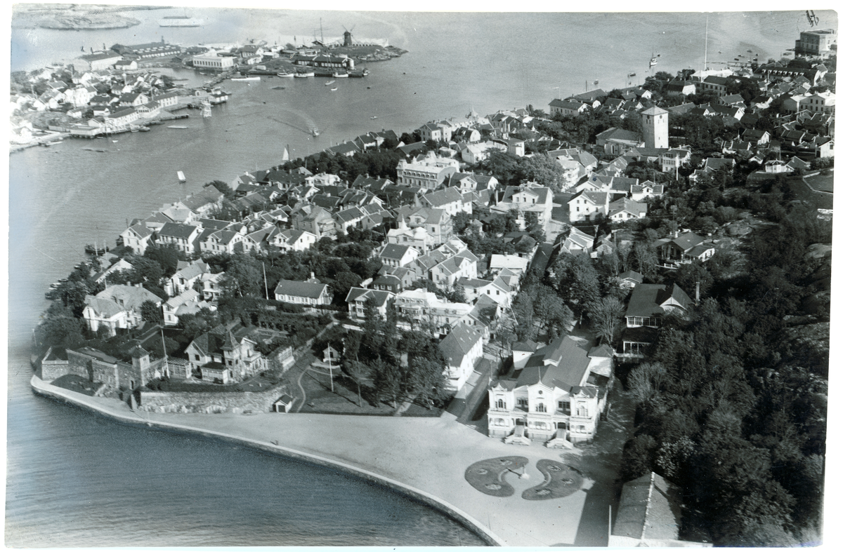 Tryckt text på kortet: "Flygfotografi. Nordisk Konst. Copyright. Reproduktion utan medgivande beivras. Enligt gällande bestämmelser skall vid Reproduktion av detta fotografi följande text anbringas: N:o K279."
