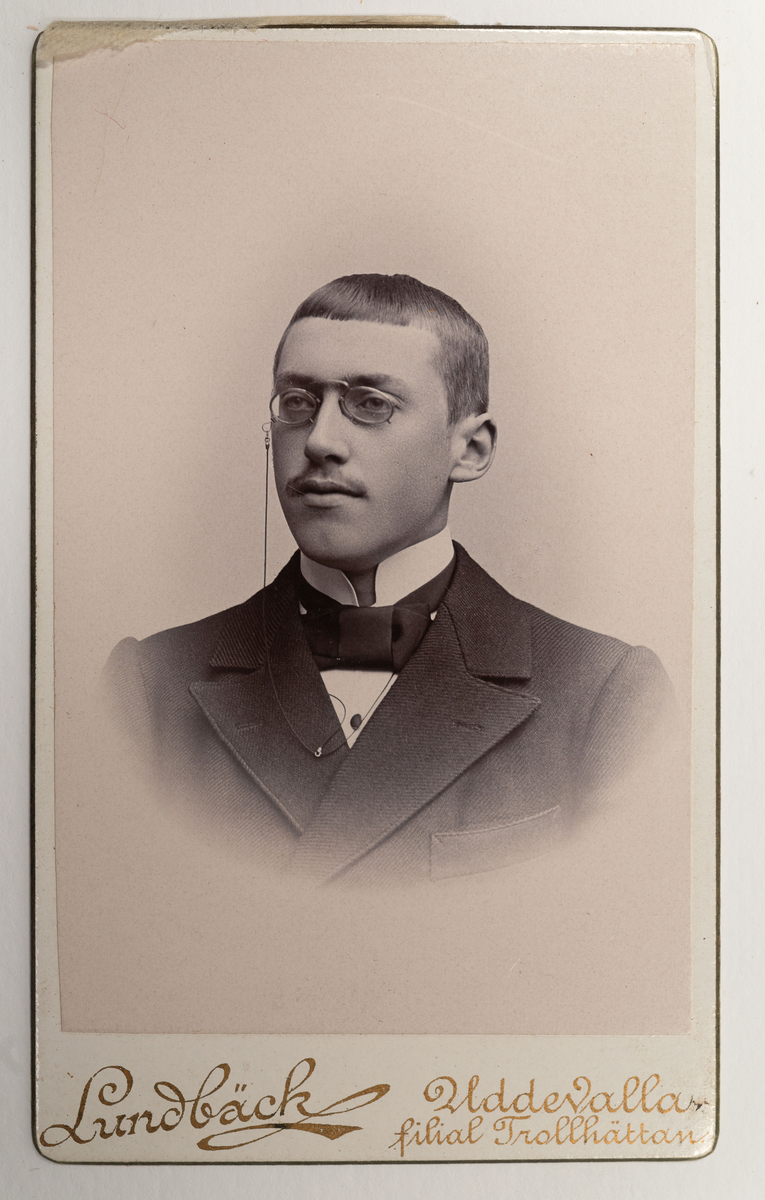 Visitkortsporträtt av Adolf C Zachau. Fotografiet sitter i fotoalbum som tillhört Gertrud Zachau. Fotografiet sitter på sida 39.