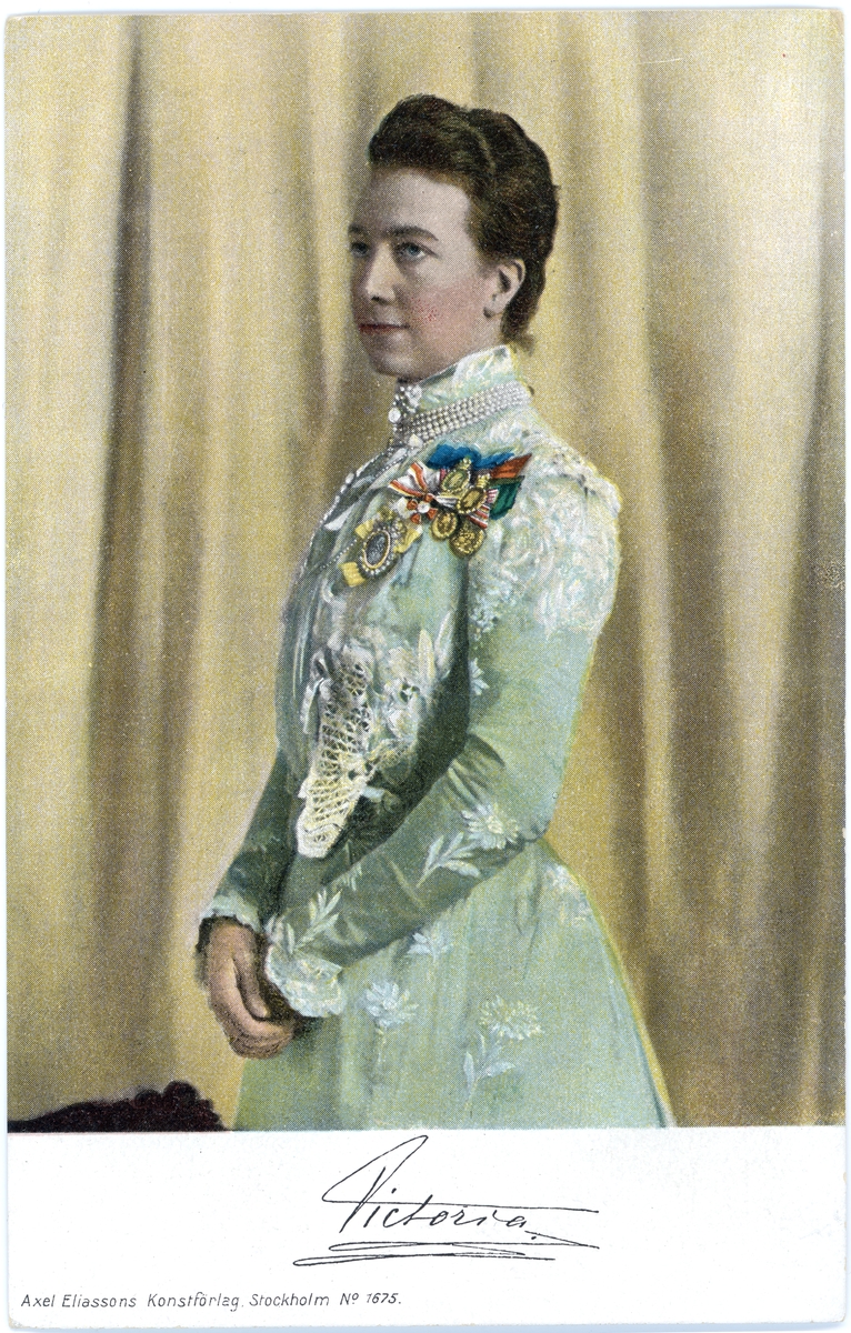 Vykort med porträtt och namnteckning av drottning "Victoria"