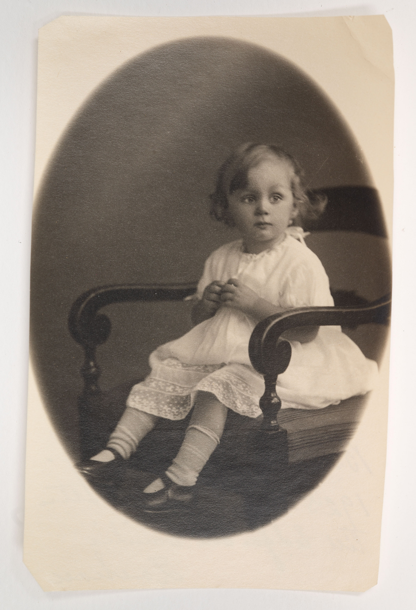Visitkortsporträtt av Birgitta Zachau. Fotografiet sitter i fotoalbum som tillhört Gertrud Zachau. Fotografiet sitter på sida 28.