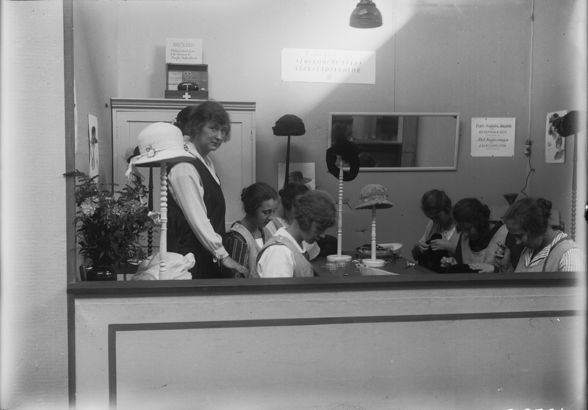 Hantverkets propagandautställning: Hattmodister. Anordnare Stockholms stads verkstadsskolor.