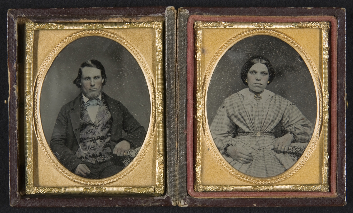 Ambrotyp. Handkolorerade porträtt. Eventuellt föreställande bergsman Bergman och hans hustru från Bagghyttan. Skulle även kunna föreställa Hjalmar Petré och Helena Sophia Petré.