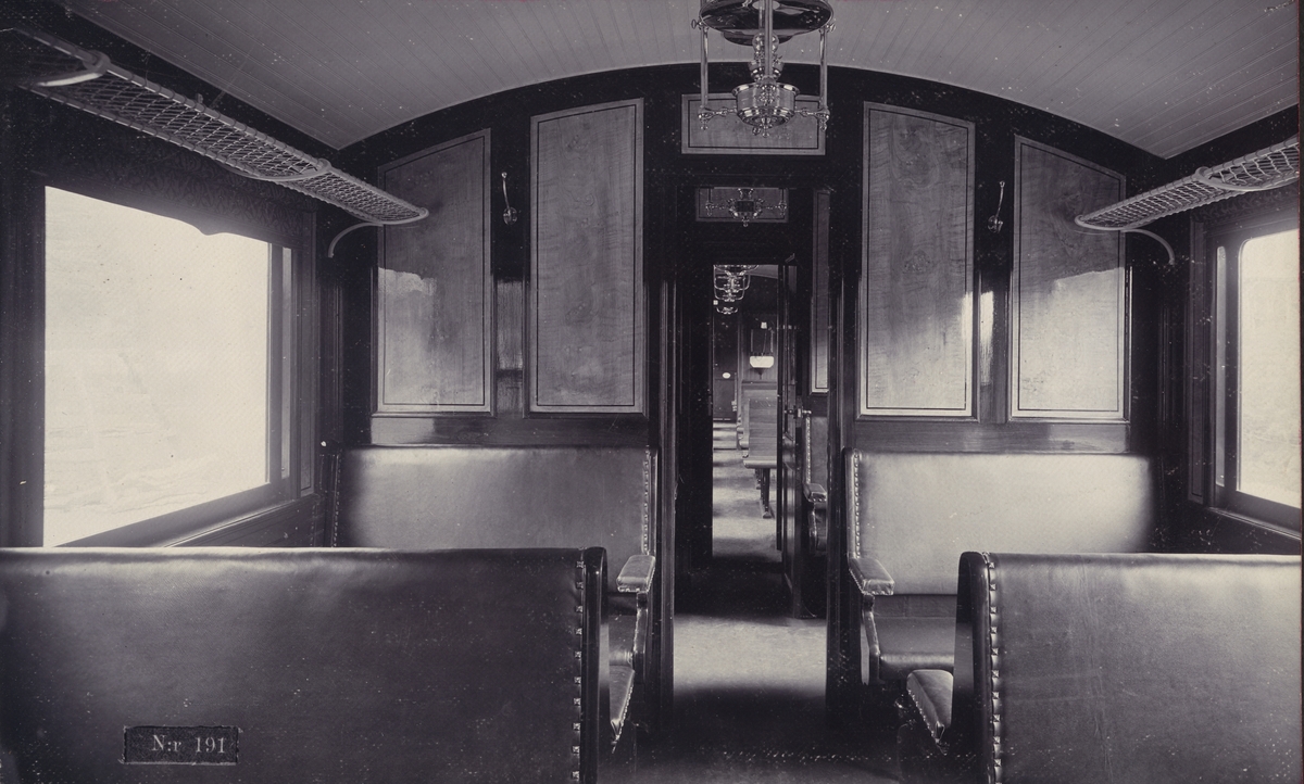 Titel: Tågvagn. 2:a klass kupé. Ur album: Wagnfabriks Aktiebolaget i Södertälge. No 4.