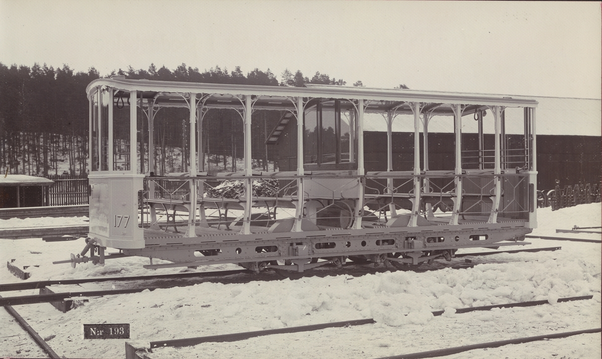 Tågvagn. Öppen släpvagn. Ur album: Wagnfabriks Aktiebolaget i Södertälge. No 4.
