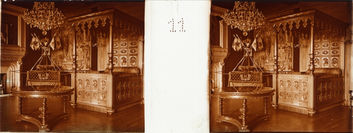 Stereobild av Henri IV' s kammare i Chateau de Pau.
