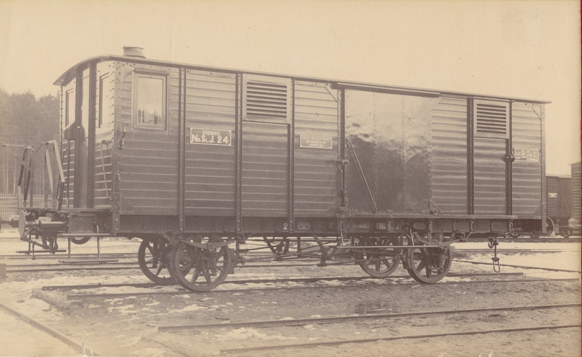 Tågvagn. Sveriges Statsb. modell. Lit. G1. Ur album för Wagnfabriks Aktiebolaget i Södertälge 1893-1894.