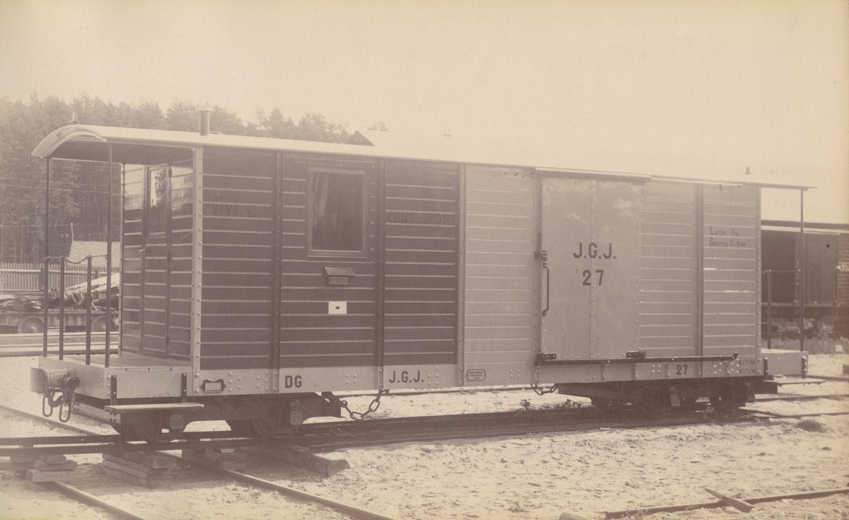 Tågvagn. Kombinerad post- och bagagevagn. Lit. D.S. Ur album för Wagnfabriks Aktiebolaget i Södertälge 1893-1894.