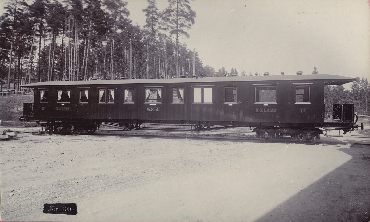 Tågvagn. 2:a och 3:e klass boggiepersonvagn. Ur album: Wagnfabriks Aktiebolaget i Södertälge. No 4.