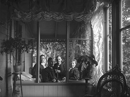 Grupporträtt på prästgårdens veranda, Lillhärad.