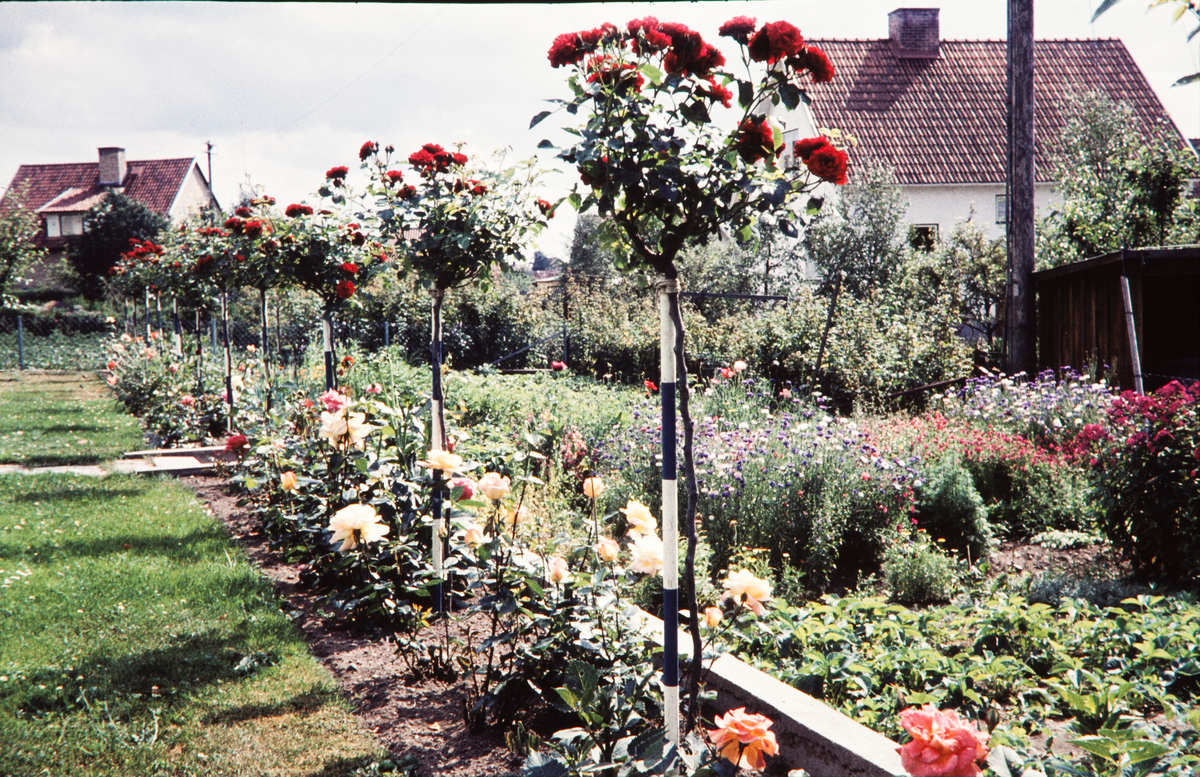 Trädgård på Budkavlevägen, Väster i Växjö 1959.