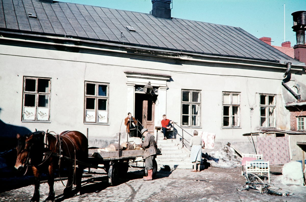 Lindgren & Brandt på Storgatan upphör. Växjö, 1958. Sett från innergården.