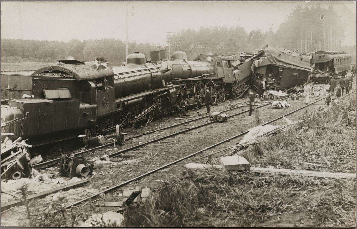 Stationsområdet i Malmslätt efter kollisionen mellan Statens Järnvägar, SJ A 1016 och SJ B 1035.