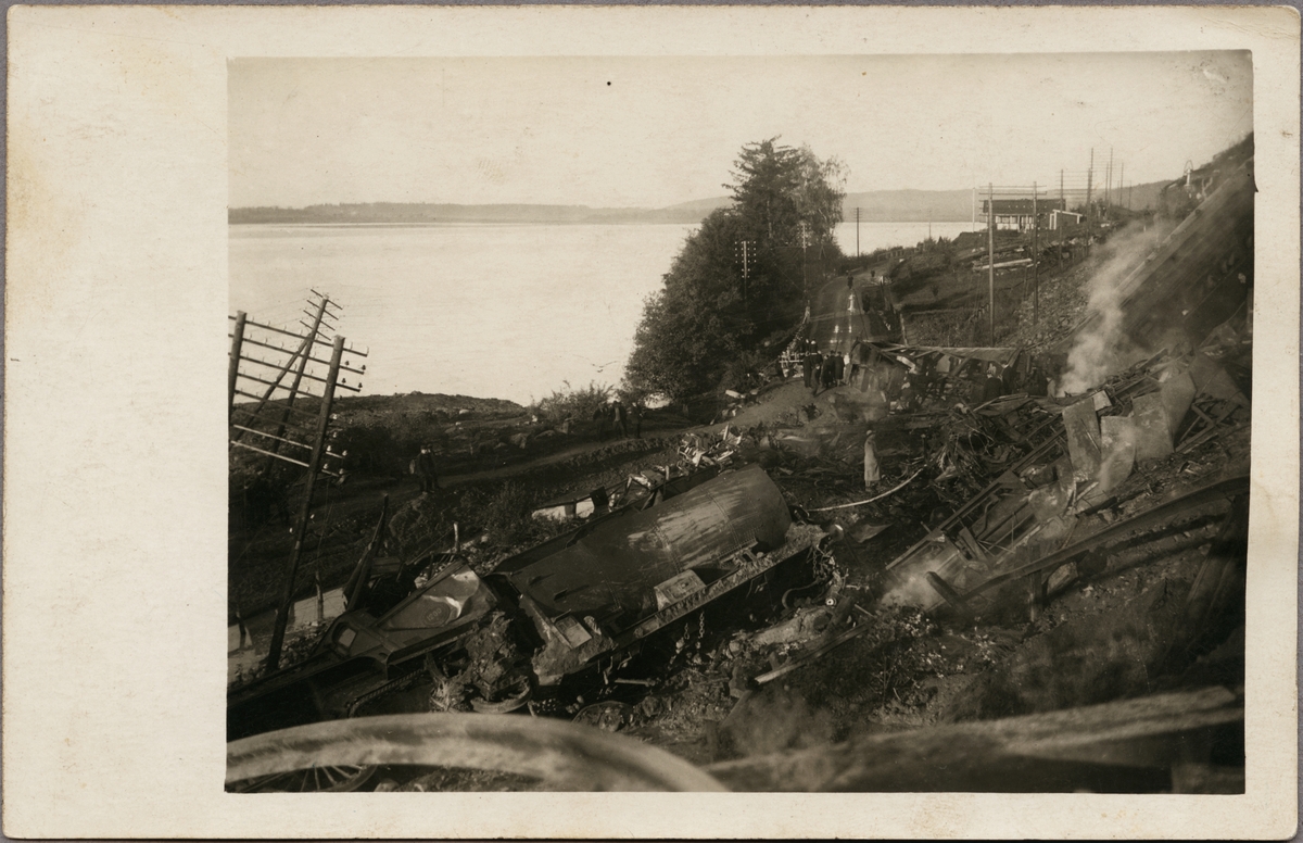 Tågolycka vid Getå den 1 oktober 1918 där bland annat, Statens Järnvägar, SJ F 1200 rasade nedför slänten efter ett banvallsras.