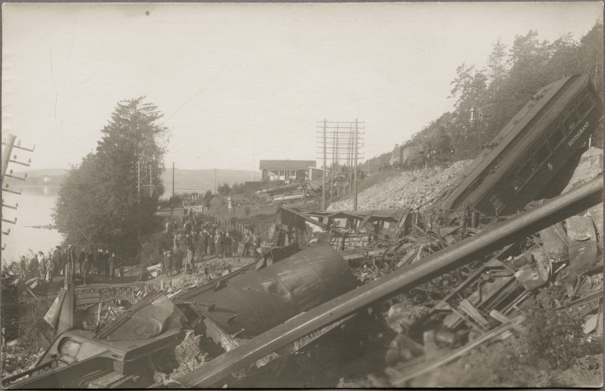 Tågolycka vid Getå den 1 oktober 1918 där bland annat, Statens Järnvägar, SJ F 1200 rasade nedför slänten efter ett banvallsras.