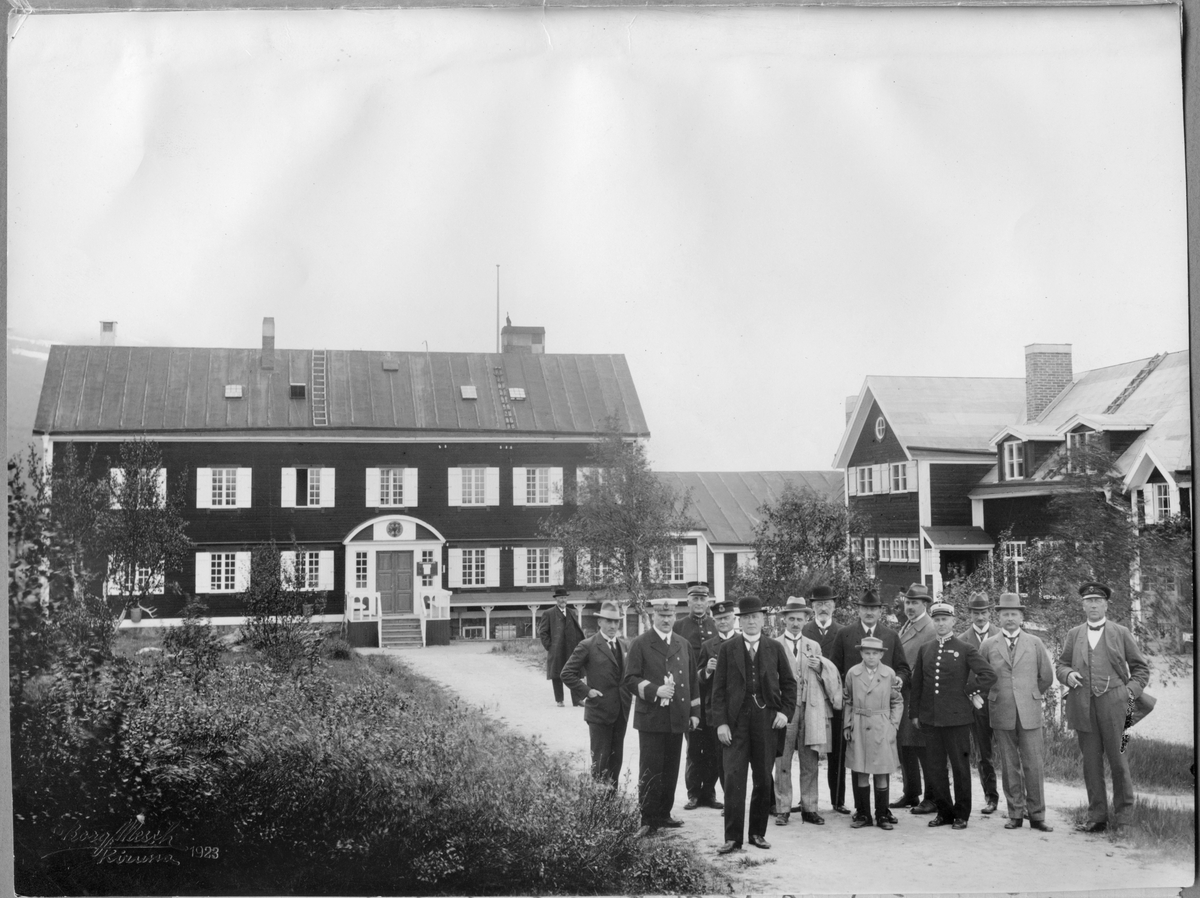 Malmbanans elektrifiering. Högre tjänstemän på besiktningsresa, här vid Abisko turiststation.