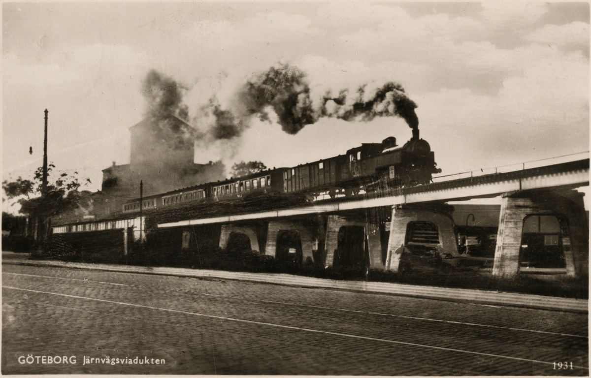 Titel: Persontåg på järnvägsviadukten mellan Olskroken och Göteborg C.