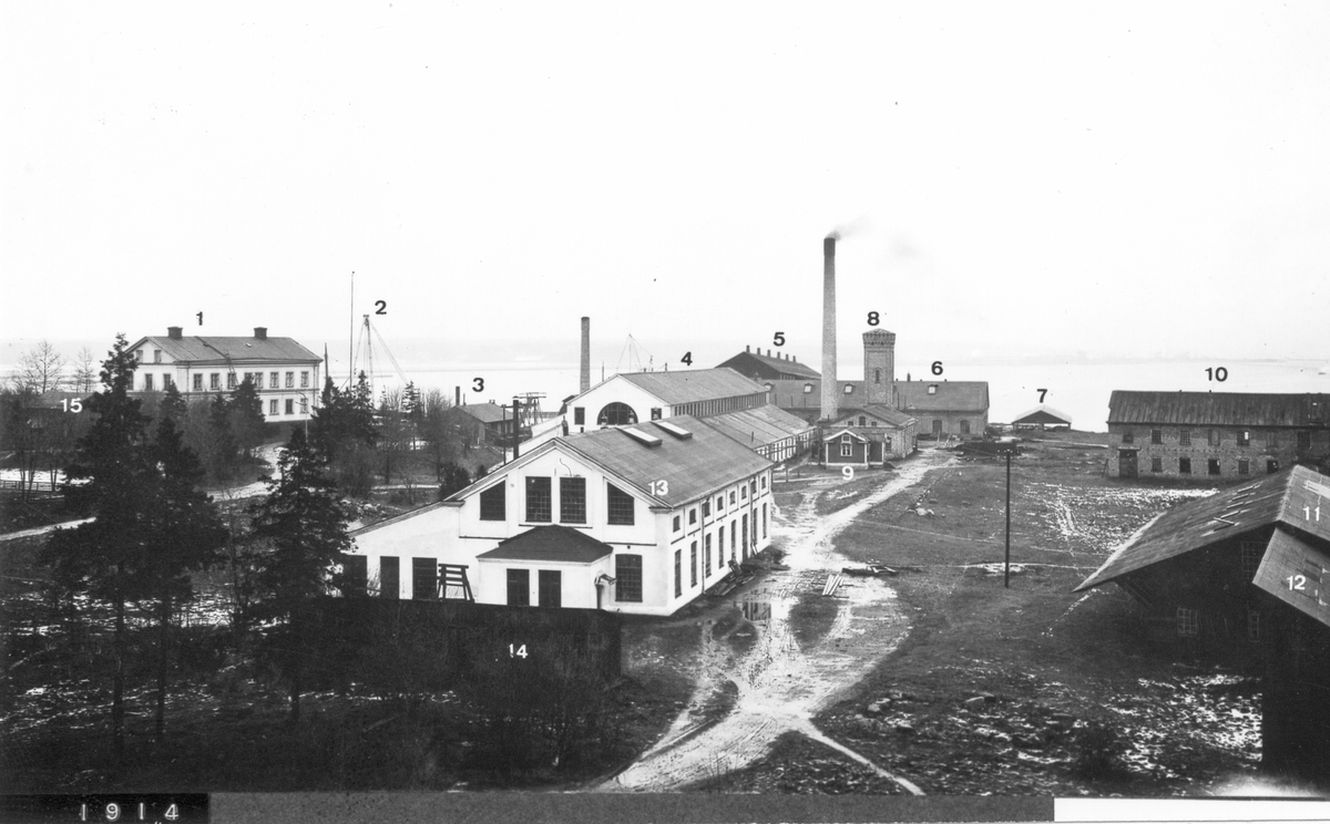 Översiktsbild av varvsområdet vid Gävle Varv 1914.