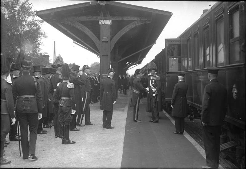 Titel: Konung Gustav den V:s besök i Sala vid 300-årsfirandet.