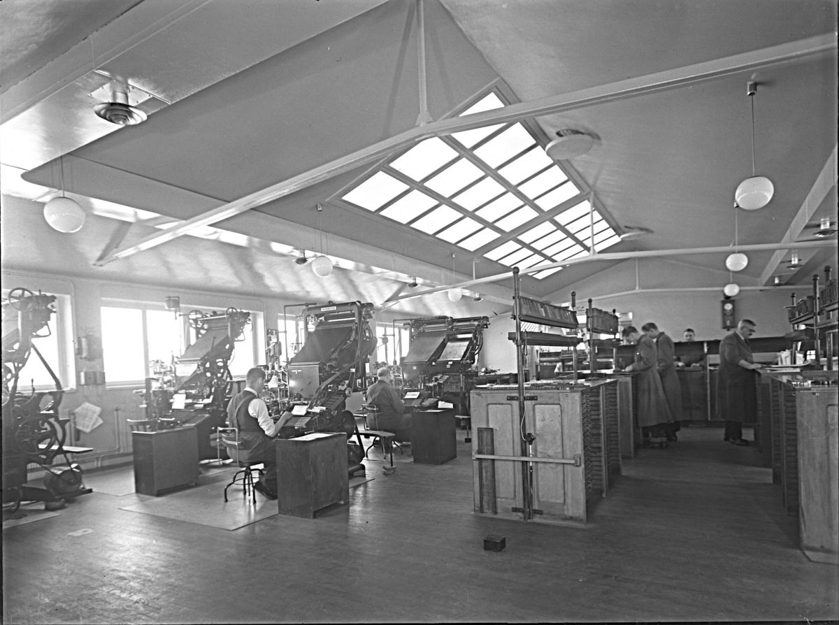 Interiör från tidningssätteriet hos Västmanlands Läns Tidning, Västerås.