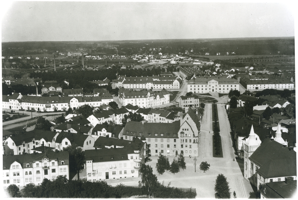 Utsikt mot öster, från Domkyrkan i Västerås. 1920-tal.